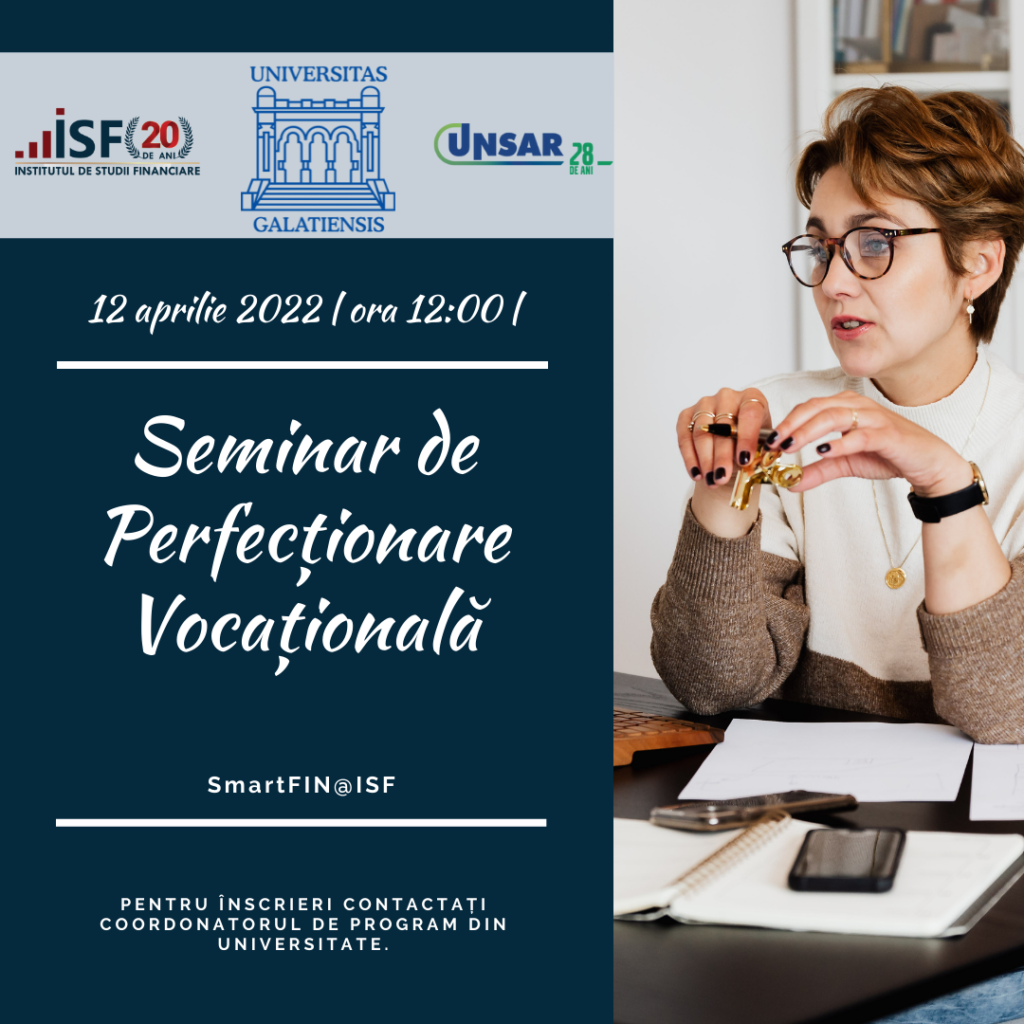 Institutul de Studii Financiare în parteneriat cu Universitatea Dunărea de Jos din Galați –Facultatea de Economie si Administrarea Afacerilor, vă invită în data de 12 aprilie 2022, ora 12:00 la Seminarul […]