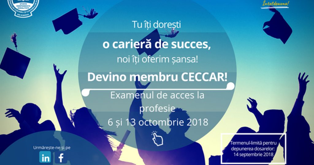 Dosarele se pot depune la sediul filialelor CECCAR până la data de 14 septembrie a.c., iar informații despre actele necesare înscrierii sunt disponibile pe site-ul nostru.