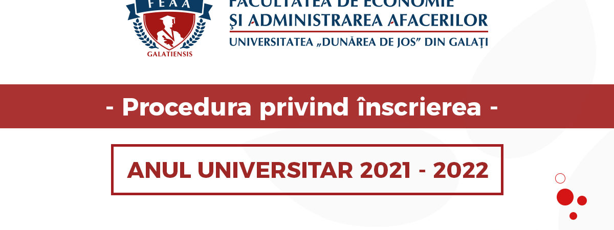 - Documentele necesare pentru înscriere pot fi descărcate de pe pagina web a facultăţii www.feaa.ugal.ro sau ridicate de la secretariatul facultăţii.
